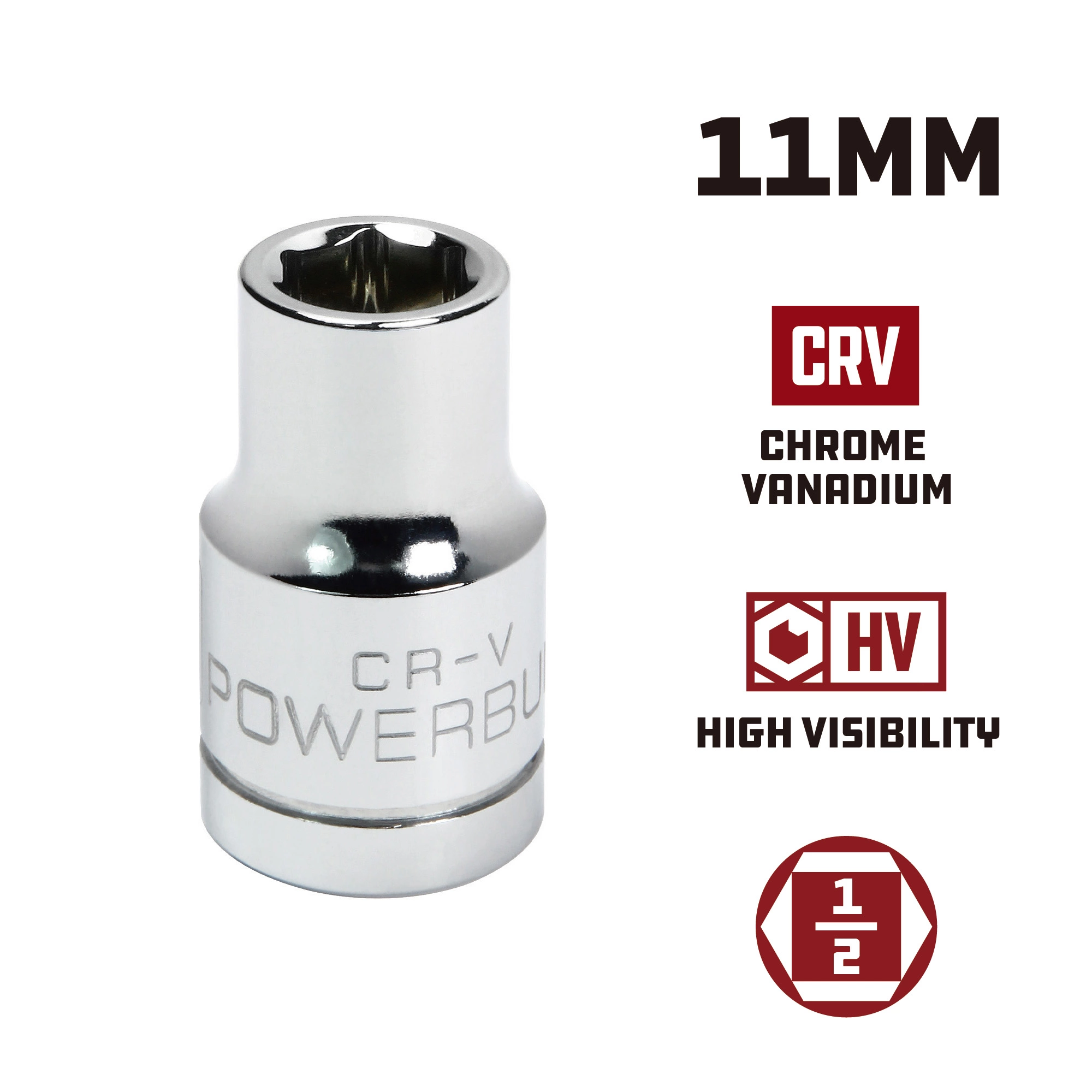 - Powerbuilt chrome sockets feature HV high visibility size markings that are three times larger for easy size selection.