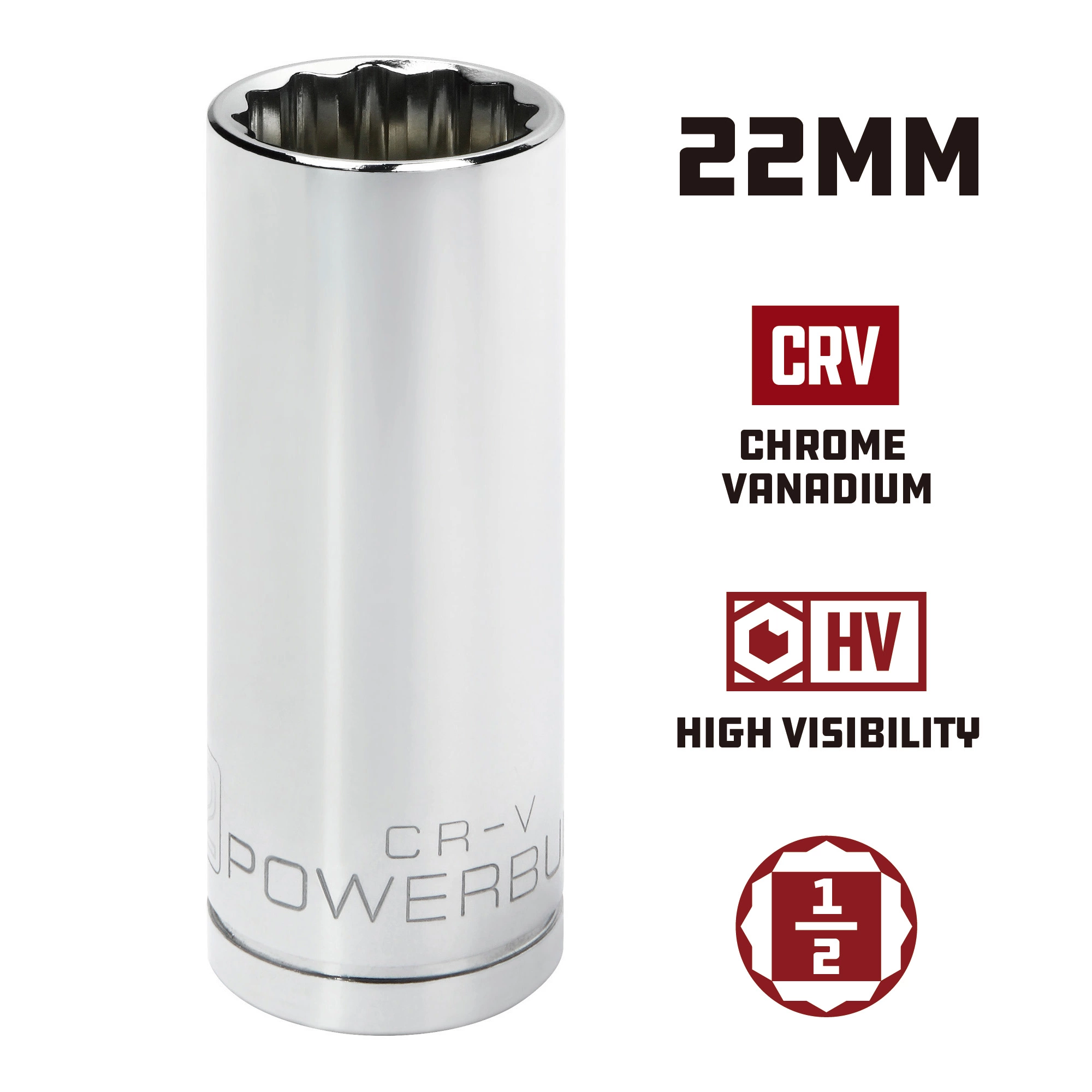 Powerbuilt 1/2 in. Drive x 22mm 12 Point Deep Socket – 940163