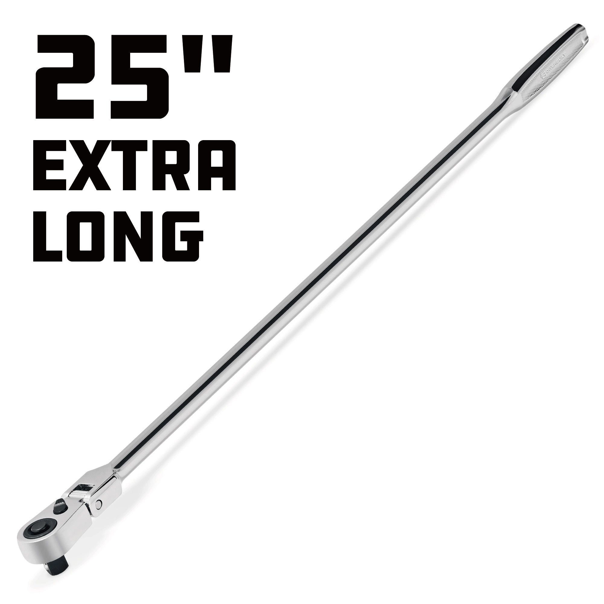 Powerbuilt 1/2 Inch Drive 72 Tooth Pro Tech 25 Inch Long Reach Flex Head Ratchet with Contour Handle – 649956