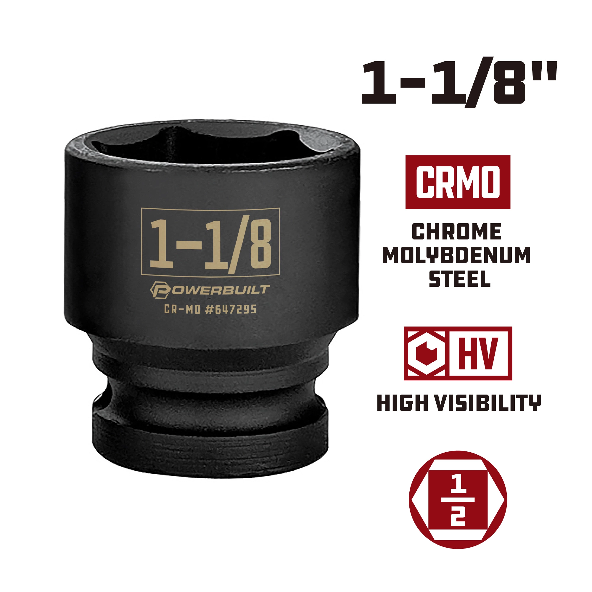 Powerbuilt 1/2 Inch Drive x 1-1/8 Inch 6 Point Impact Socket – 647295
