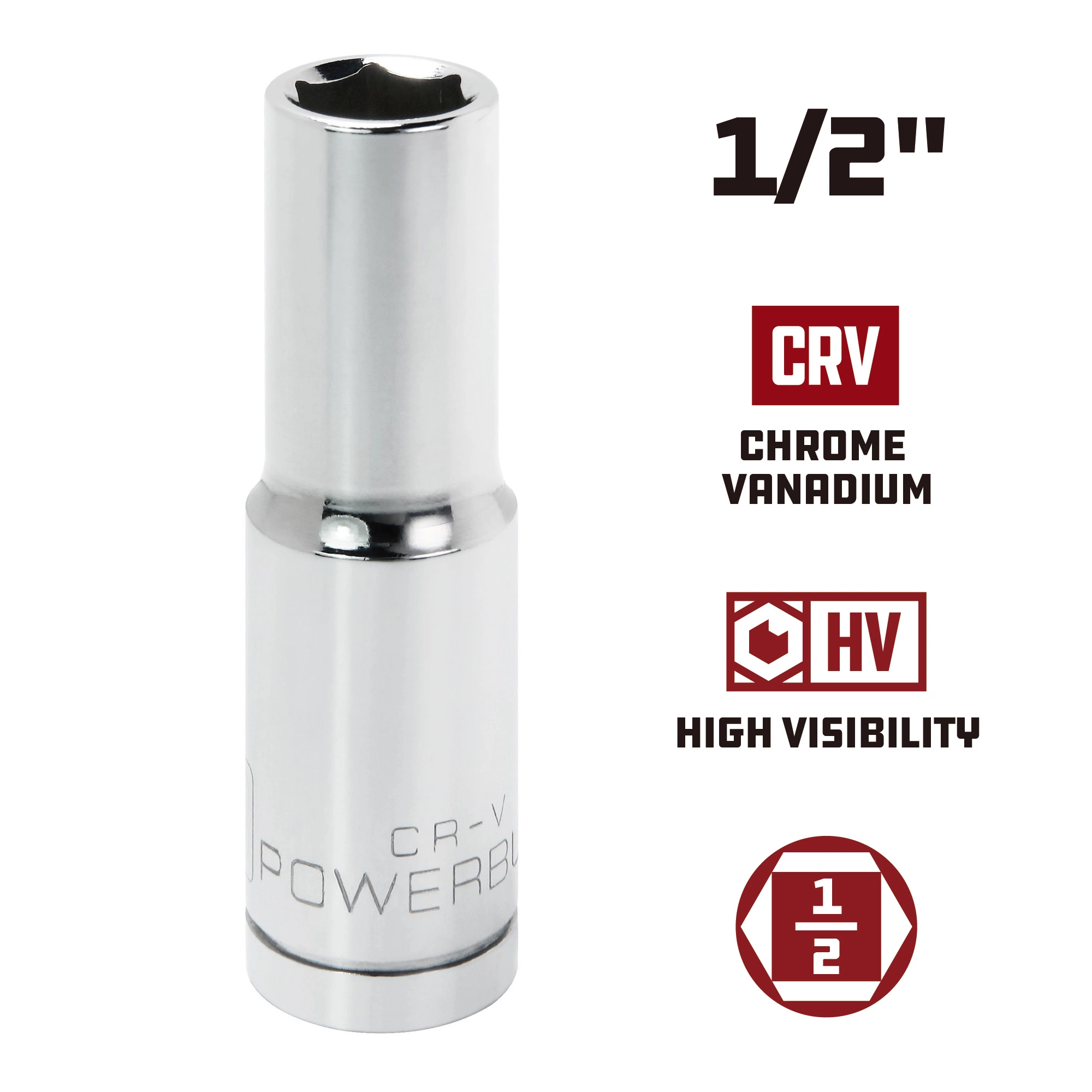 Powerbuilt 1/2 Inch Drive x 1/2 Inch 6 Point Deep Socket – 642344