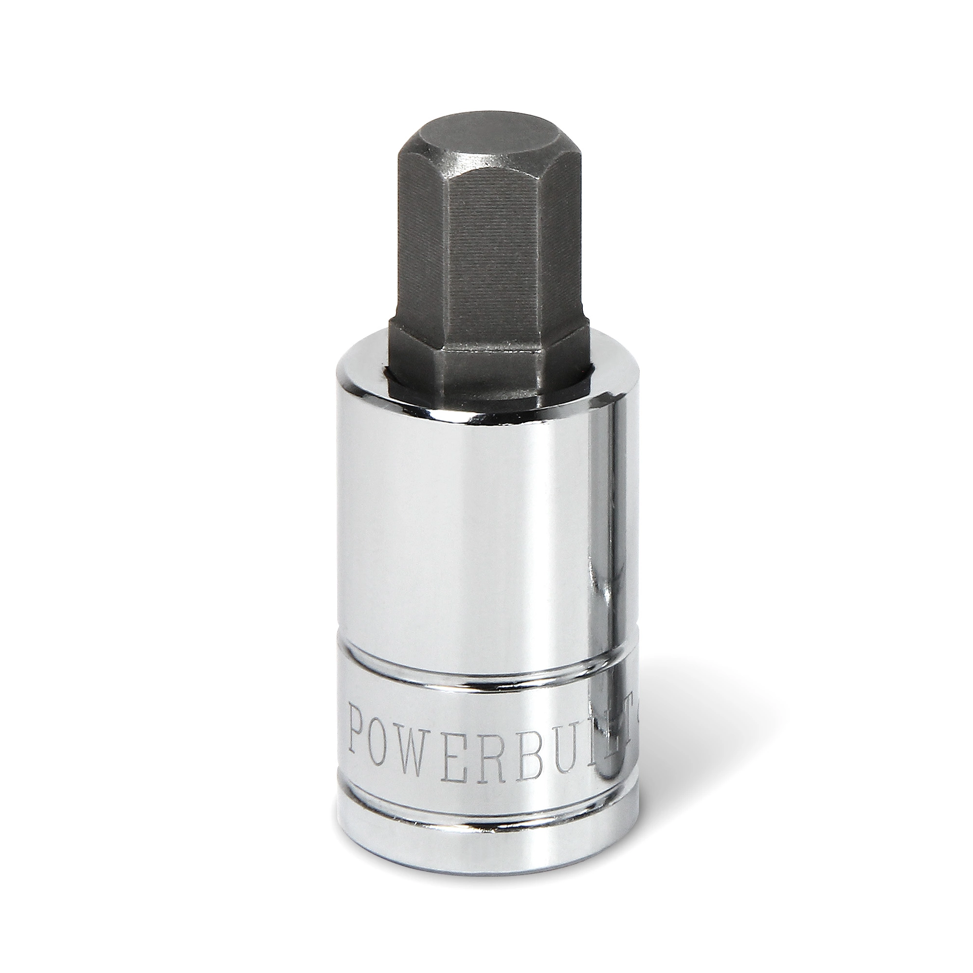 Powerbuilt hex bit sockets feature sockets that use a 2 piece press-fit design for strength and durability. Socket bodies are constructed of Chrome Vanadium Steel and mated to S-2 industrial-grade steel bits. Precision ground for a tight fit on cap screws and other internal hex fasteners. Dual grease rings offer better grip and easier handling with greasy hands.