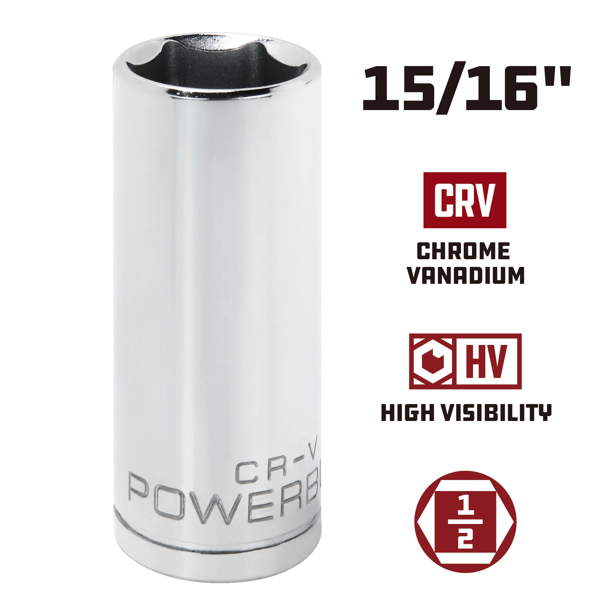Powerbuilt Sockets are made from high grade Chrome Vanadium Steel and feature a mirror polished chrome plated finish for superior durability and corrosion resistance. Each Powerbuilt socket is cold forged, heat treated and produced with precision tolerances.
