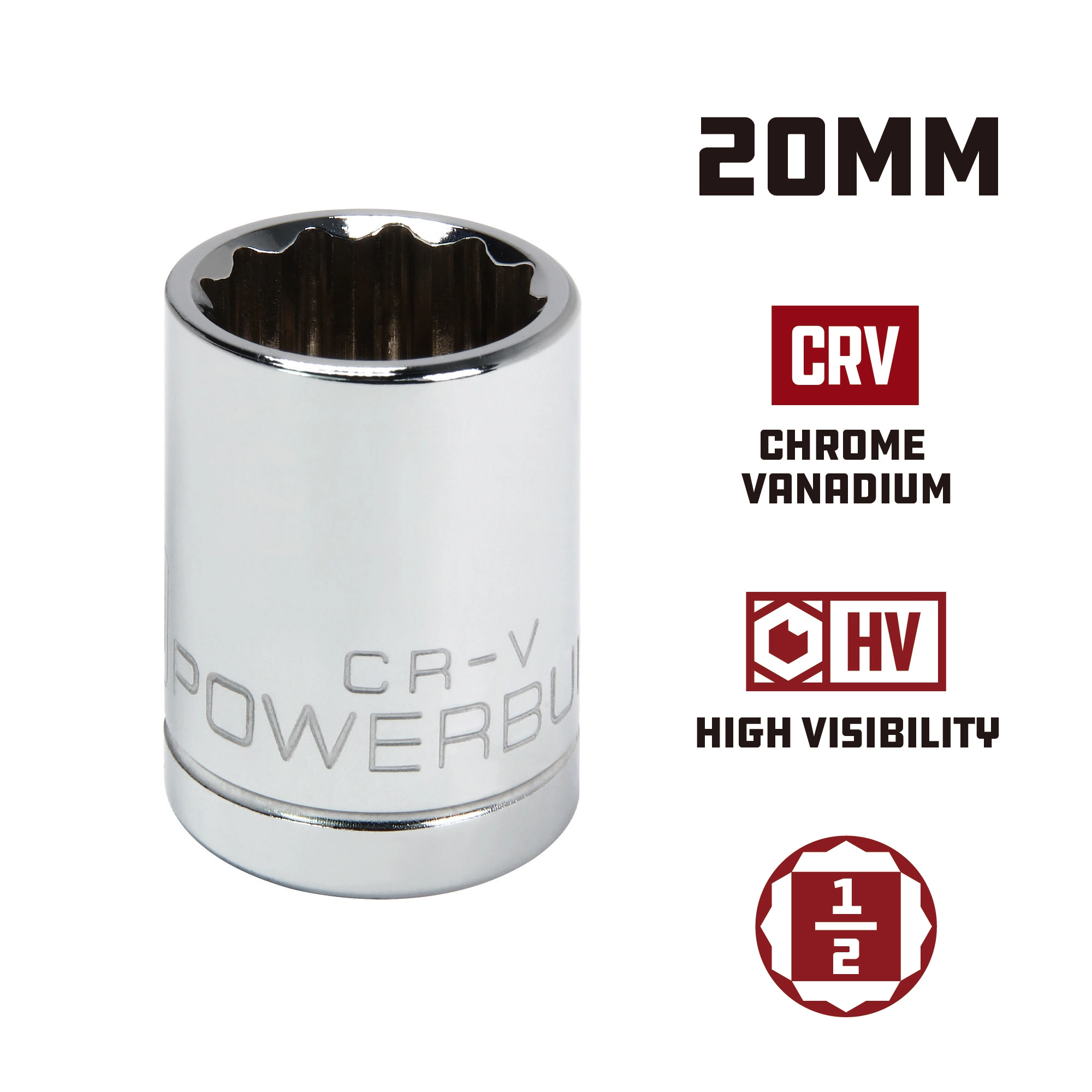 Powerbuilt 1/2 Inch Drive x 20 MM 12 Point Shallow Socket – 642018