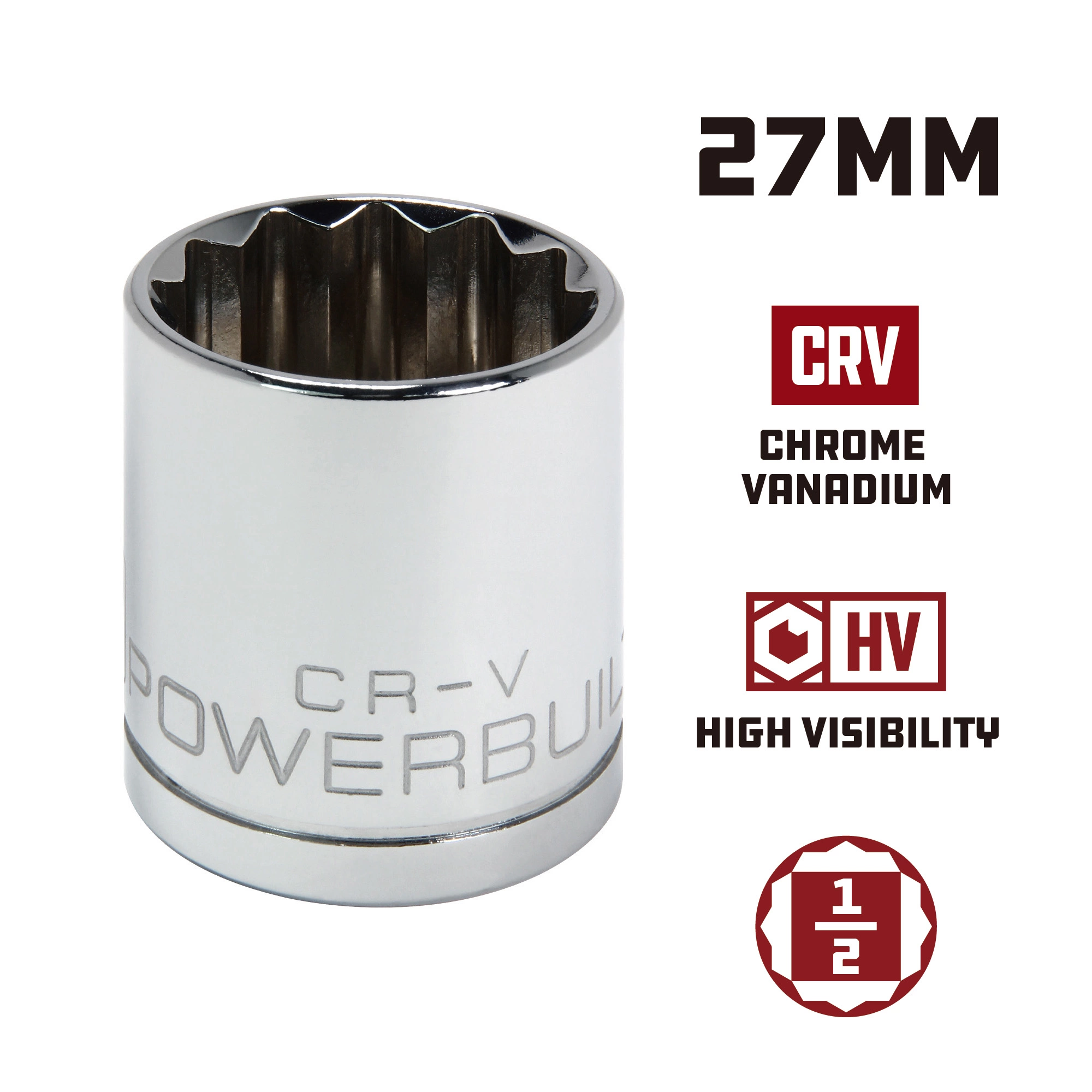 Powerbuilt 1/2 Inch Drive x 27 MM 12 Point Shallow Socket – 642034