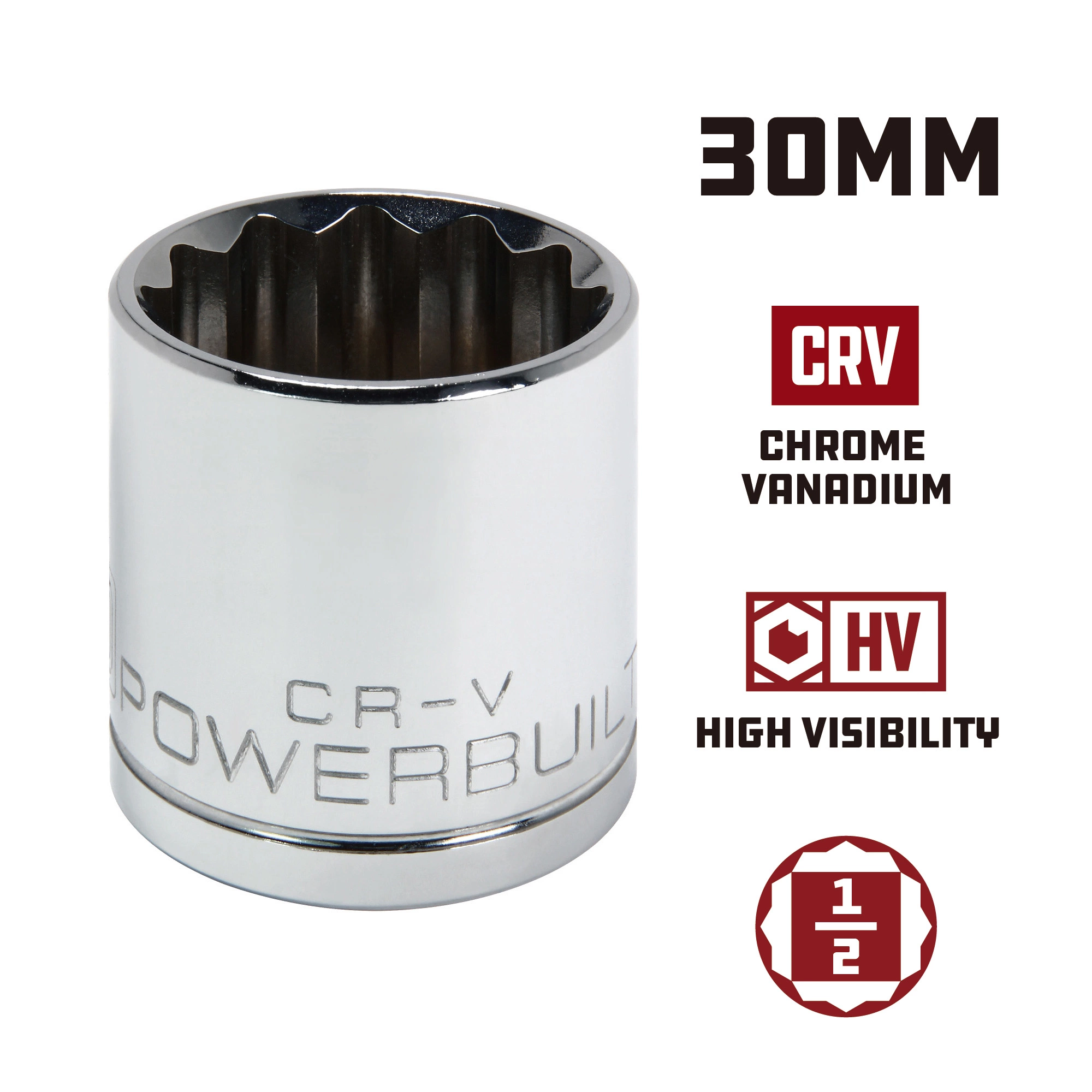 Powerbuilt Sockets are made from high grade Chrome Vanadium Steel and feature a mirror polished chrome plated finish for superior durability and corrosion resistance. Each Powerbuilt socket is cold forged, heat treated and produced with precision tolerances.