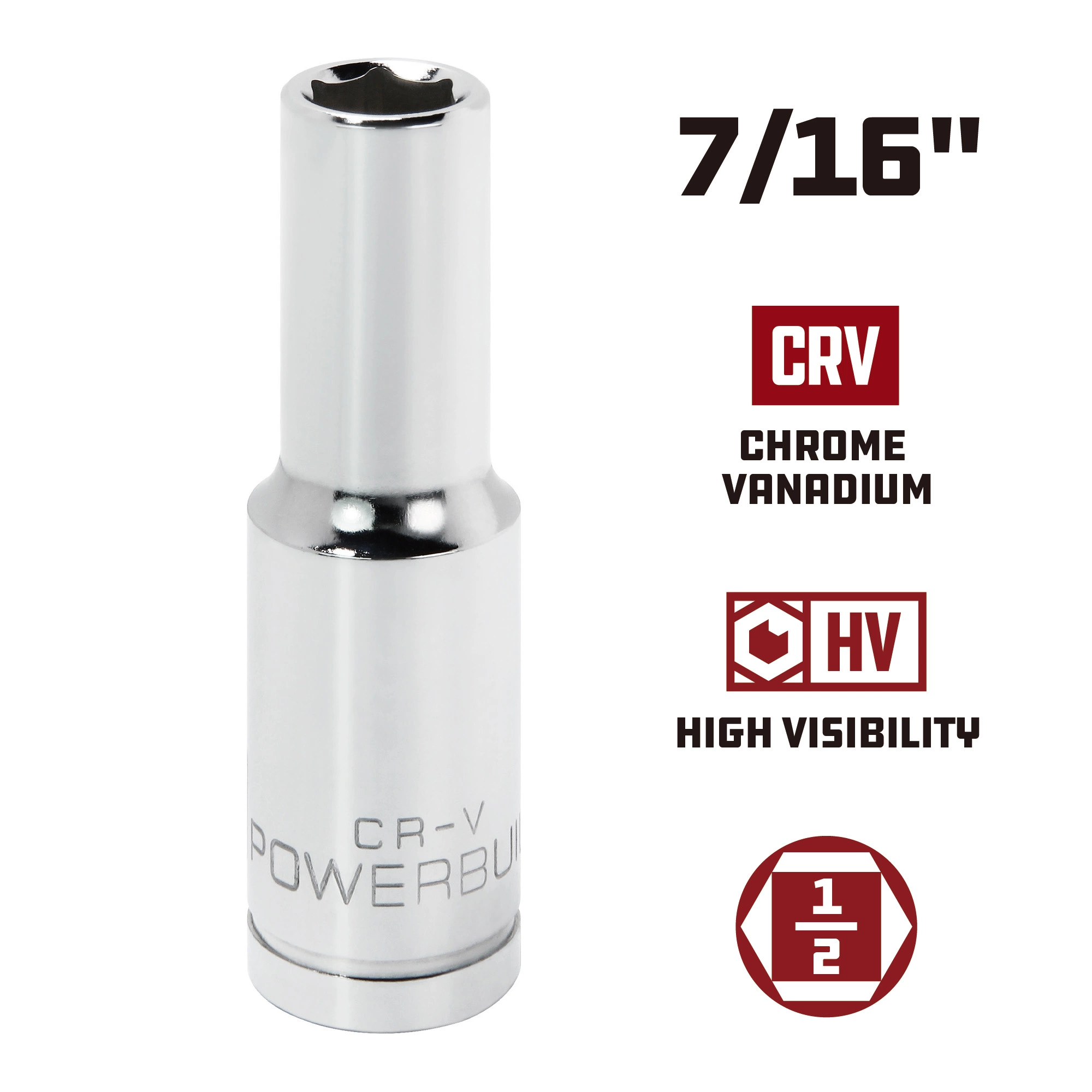 Powerbuilt 1/2 Inch Drive x 7/16 Inch 6 Point Deep Socket – 642323