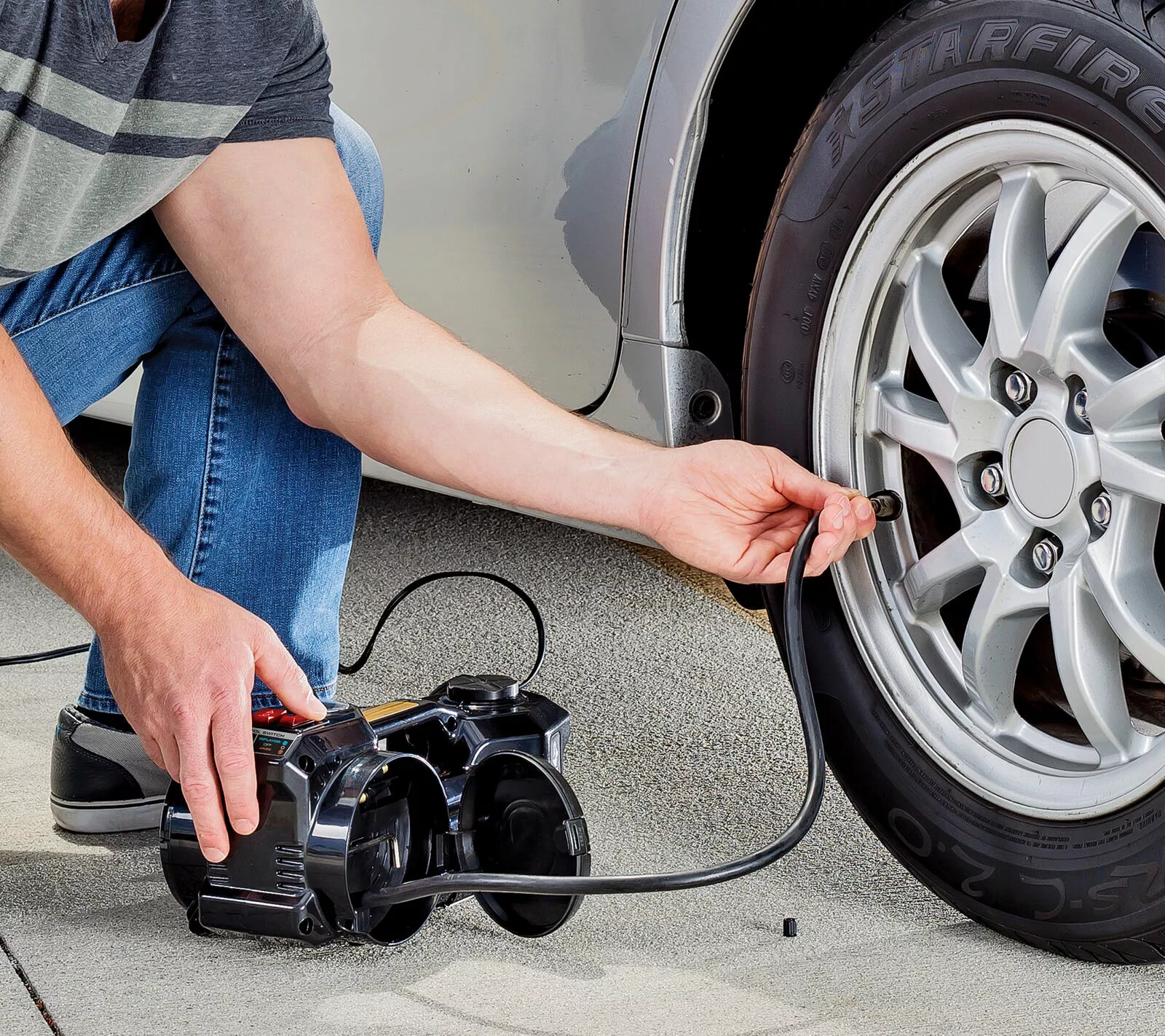 Nothing spoils a road trip faster than a flat tire. When roadside service can’t get there soon enough, reach for the Powerbuilt 12V Electric Jack and Tire Inflator. Just position it under your vehicle lift point, plug it into a 12V outlet, and press the button. Like magic, the lifting post extends and raises your vehicle up to 14 inches high. With a 1-ton lift capacity, it has more than enough power to lift one side of almost any passenger vehicle. And if your spare tire is low on air, just use the built-in 115 PSI inflator to air it up to proper pressure.