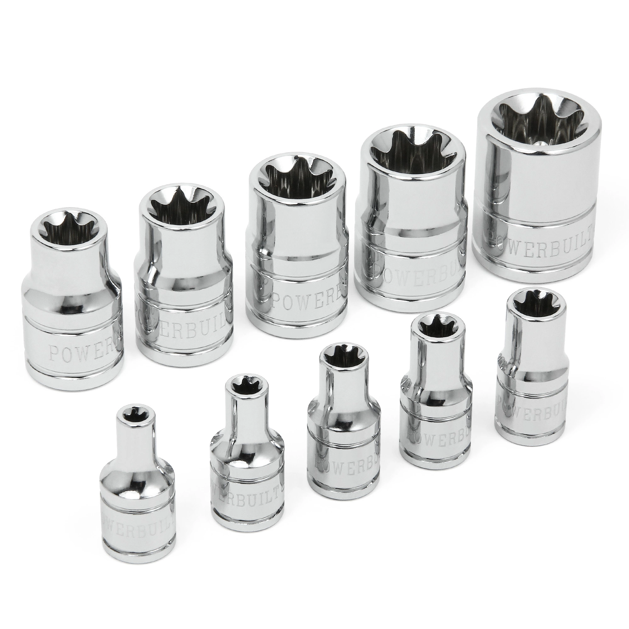 These mirror-polished premium chrome vanadium external Torx sockets are strong as well as beautiful. But these sockets offer more than just a stylish exterior. A precision chamfered opening makes it easier to slide them onto fasteners. Dependable Powerbuilt sockets meet or exceed ANSI standards and have a lifetime warranty, all at affordable prices.
