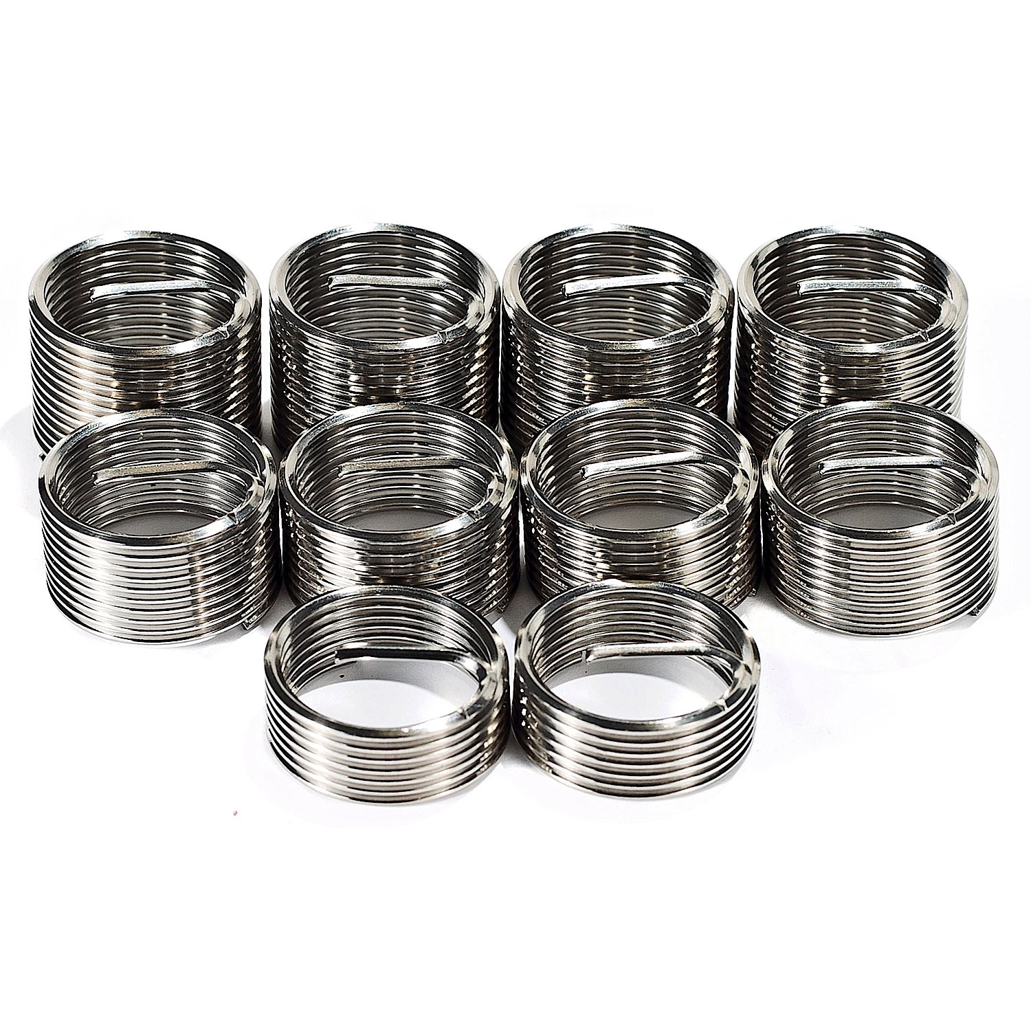 Ten piece set of Helical screw thread inserts is ideal for replacing damaged and stripped threads in a wide variety of materials. Accepts M14-1.25 coarse thread bolts.