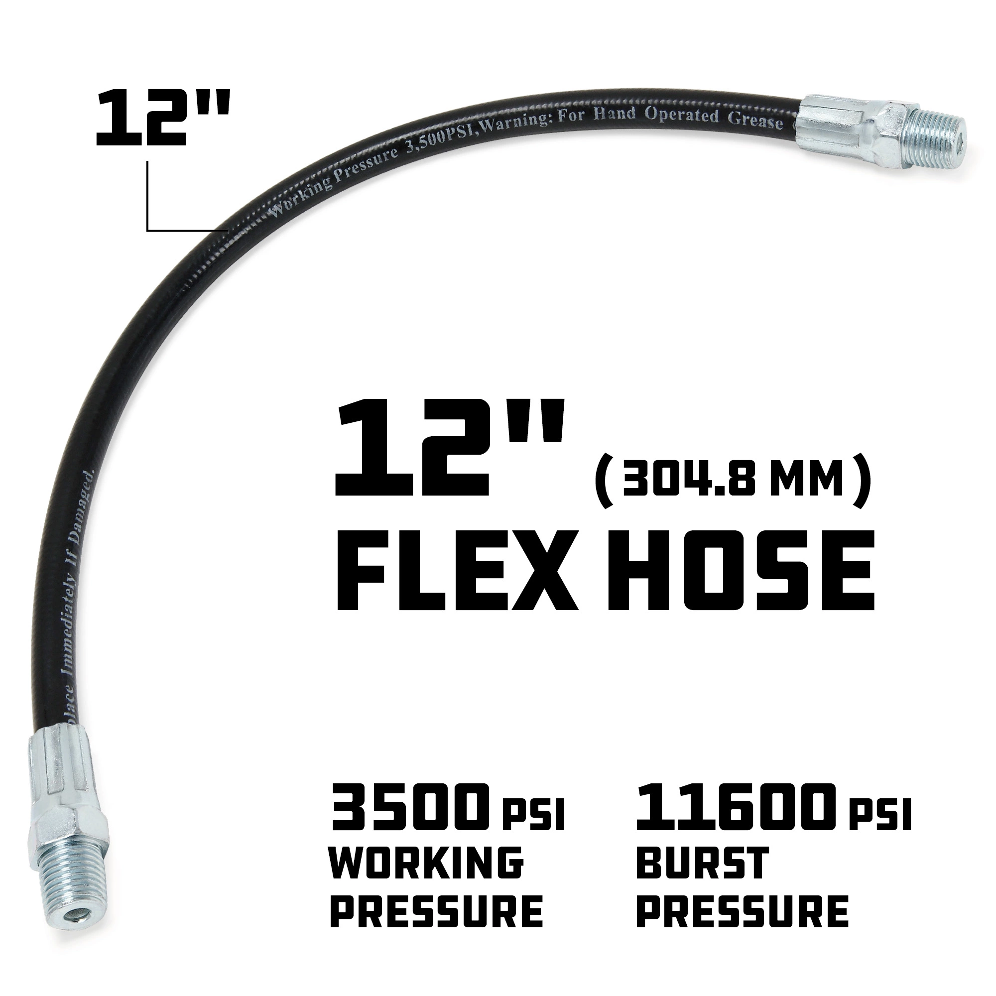 -Working pressure 3,500 PSI; burst pressure 11,600 PSI