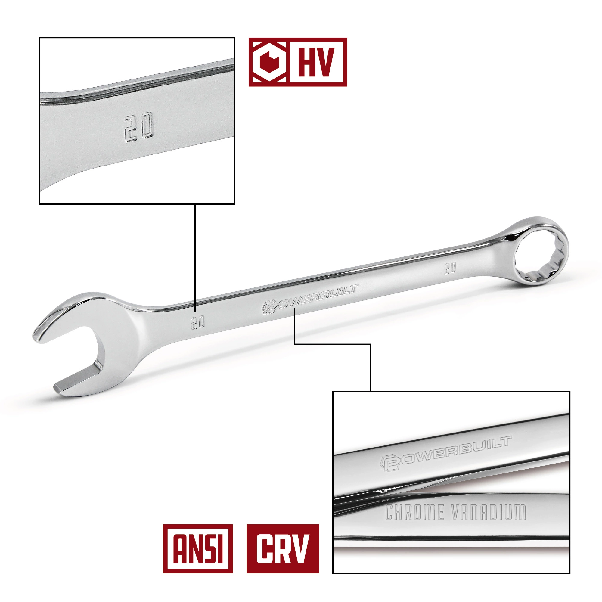 Premium tools and an organized workspace are the mark of professionals and serious home do it yourselfers. The Powerbuilt 16 Piece Pro Tech Metric Combination Wrench Set provides both. This 16 piece set is a professional level wrench set and tray designed to drop into any standard toolbox drawer. The combination wrenches have chamfered edges on both open and box ends for easier mating and reducing slippage on fasteners. The box end also features Z-Drive™ broaching for a stronger grip on fasteners. All wrenches are made of premium Chrome Vanadium steel with a mirror polished chrome plated finish. Wrench set comes in a custom laser-cut EVA foam tray that fits in box drawer to keep tools organized and secure. Powerbuilt Professional Technician combination wrenches are built to meet or exceed ANSI specifications for length, torque and hardness.