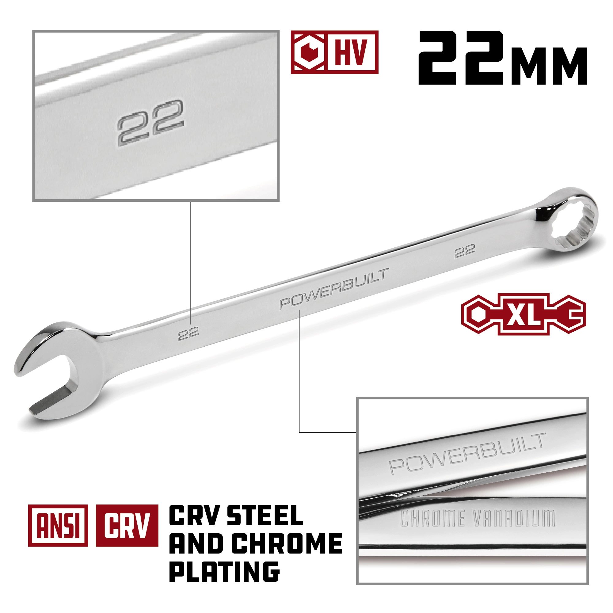Powerbuilt 22 MM Fully Polished Long Pattern Metric Combination Wrench – 640492