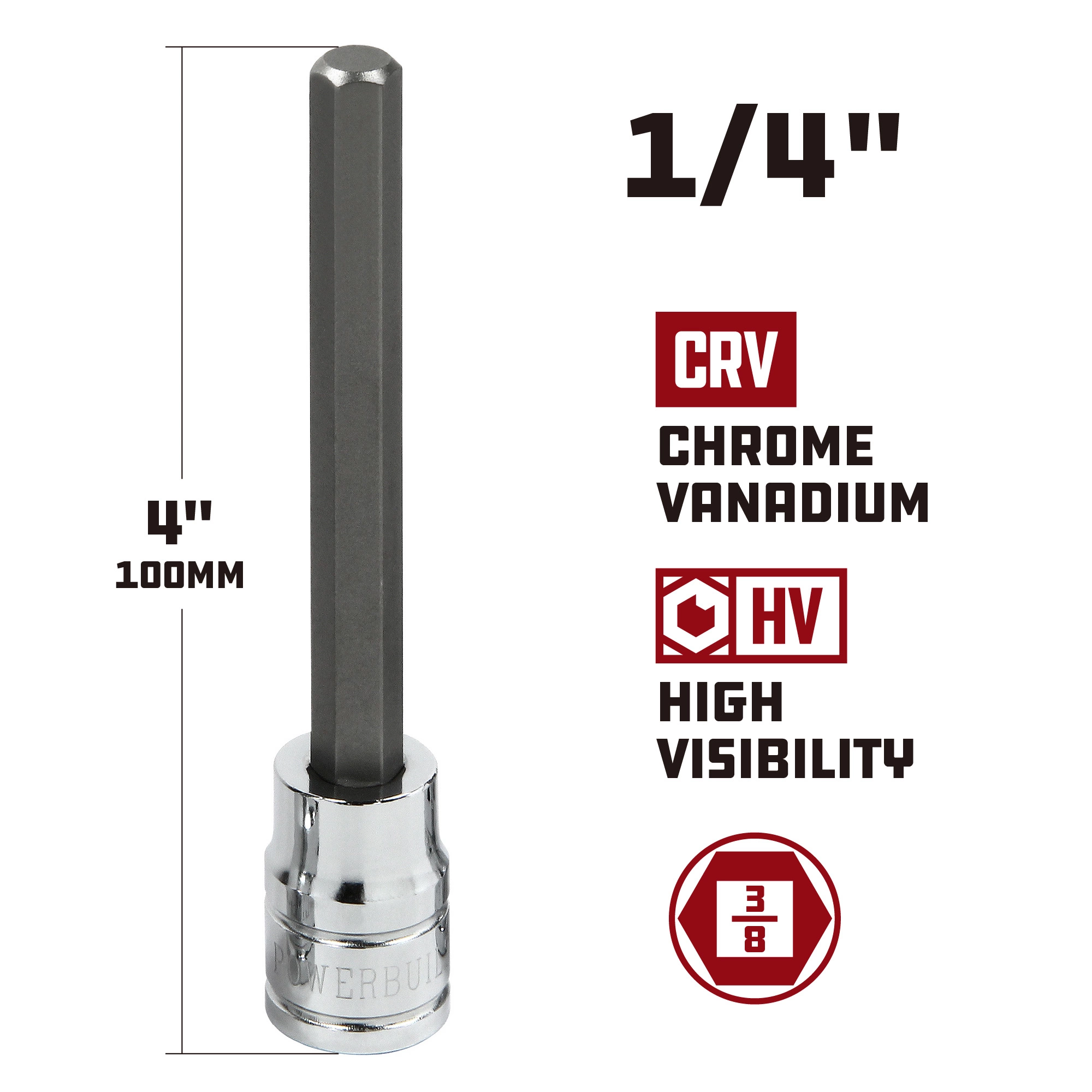Powerbuilt 3/8 in. Drive X 1/4 in. Extra Long Hex Bit Socket, 4 in. Long