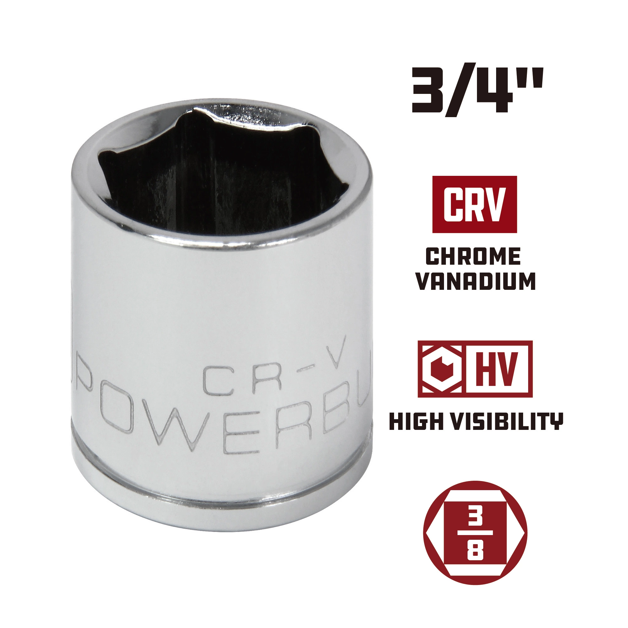 - Powerbuilt chrome sockets feature HV high visibility size markings that are three times larger for easy size selection.