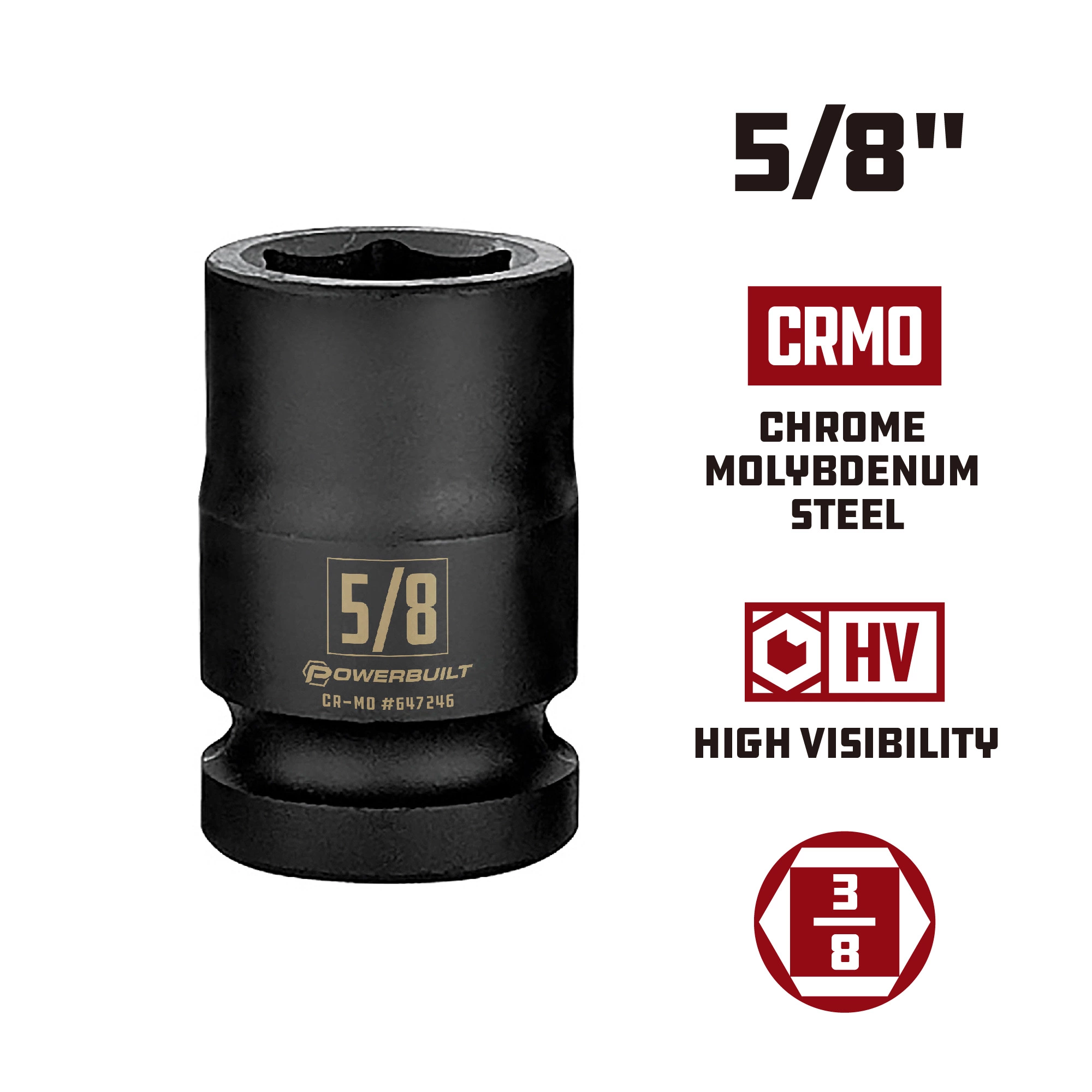 - Powerbuilt chrome sockets feature HV high visibility size markings that are three times larger for easy size selection.