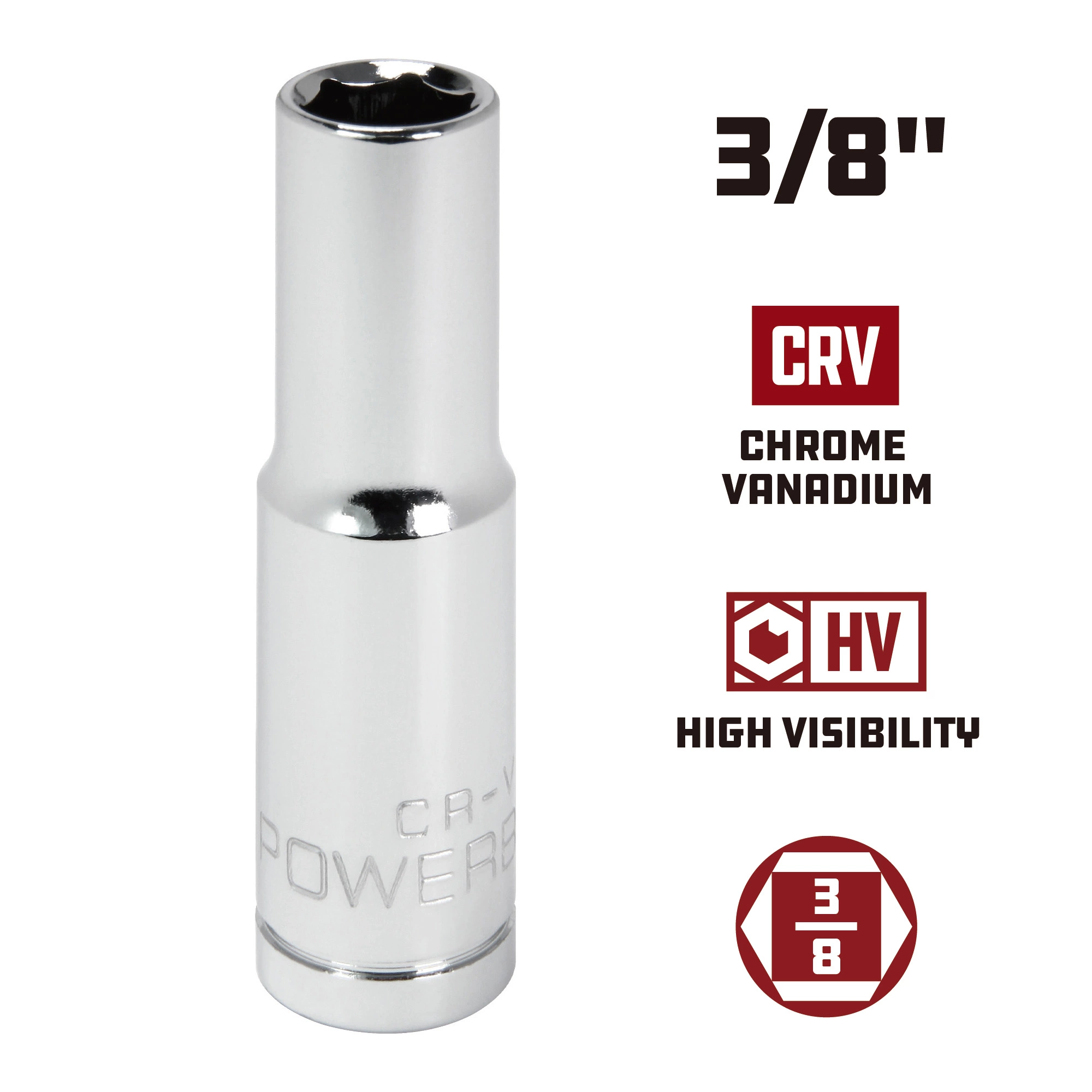 Powerbuilt Sockets are made from high grade Chrome Vanadium Steel and feature a mirror polished chrome plated finish for superior durability and corrosion resistance. Each Powerbuilt socket is cold forged, heat treated and produced with precision tolerances.