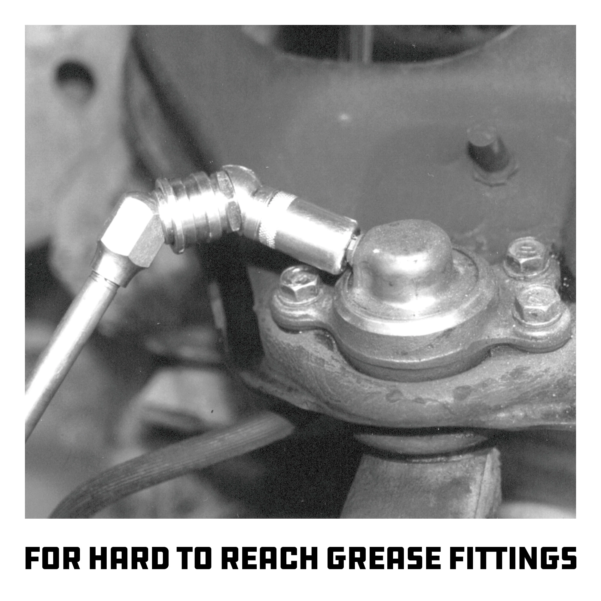 For hard to reach grease fittings. 6000 PSI working pressure. Ball bearing joints for unrestricted movement. O-ring seals prevent leaks. 1/8-in NPT threads fit most grease guns and couplers.