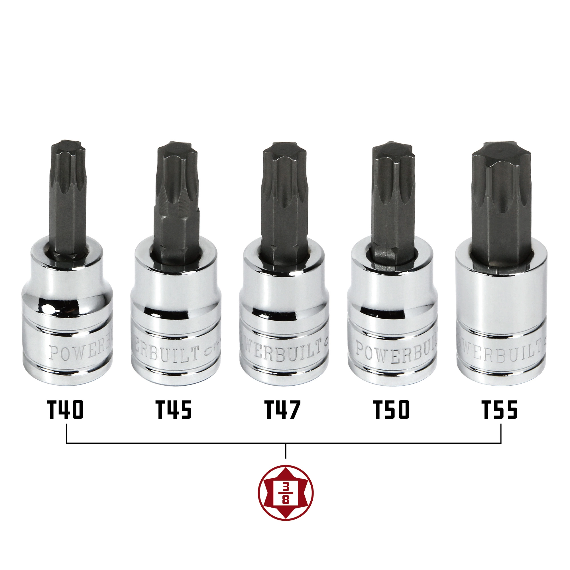 Powerbuilt 5 Pc. 3/8 in. Drive Torx Bit Socket Set, Size from T40 to T55