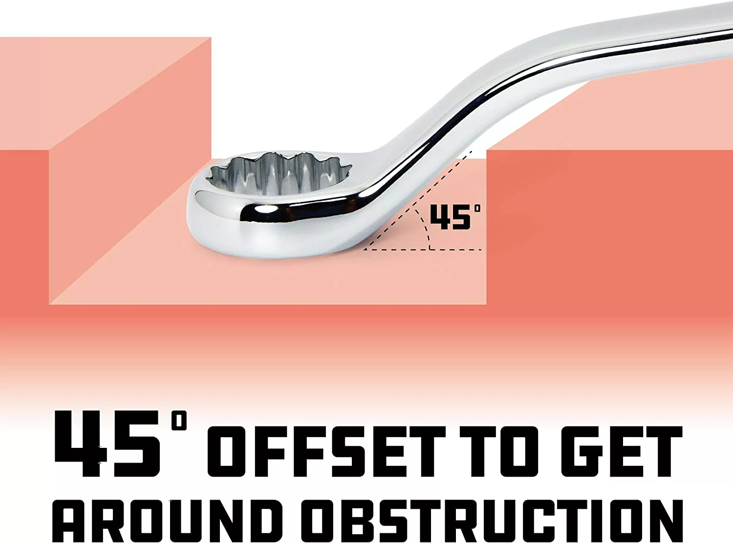 45-degree offset design makes it easier to reach nuts and bolts in tight spaces