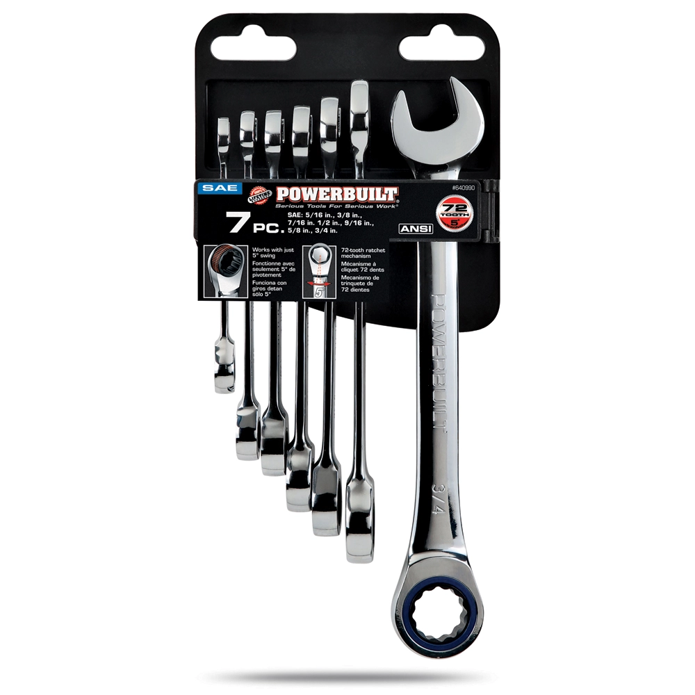 Powerbuilt 7 Piece SAE Ratchet Wrench Set, 72 Tooth, 5/16″ to 3/4″
