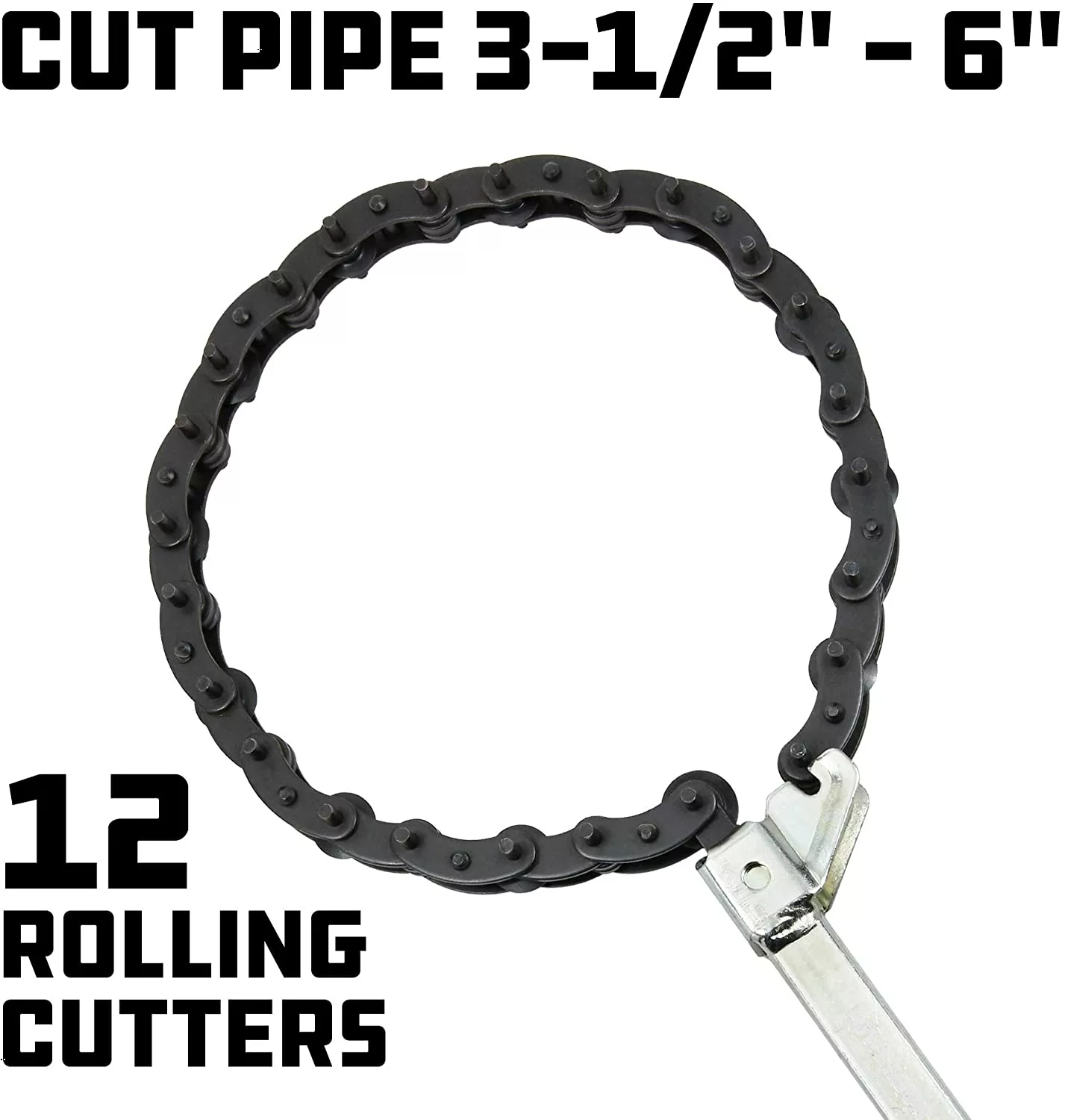 This tough Powerbuilt tail pipe cutter is perfect for cutting exhaust pipe up to 6″ in diameter. Designed with 12 hardened steel cutters for quick cutting action on exhaust pipes between 3-1/2″ to 6″. Its PVC handle cover adds comfort and reduces slippage.