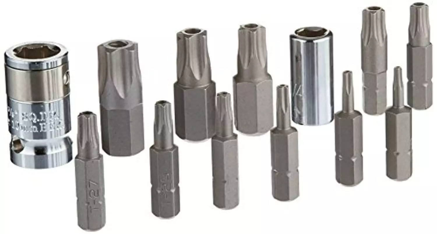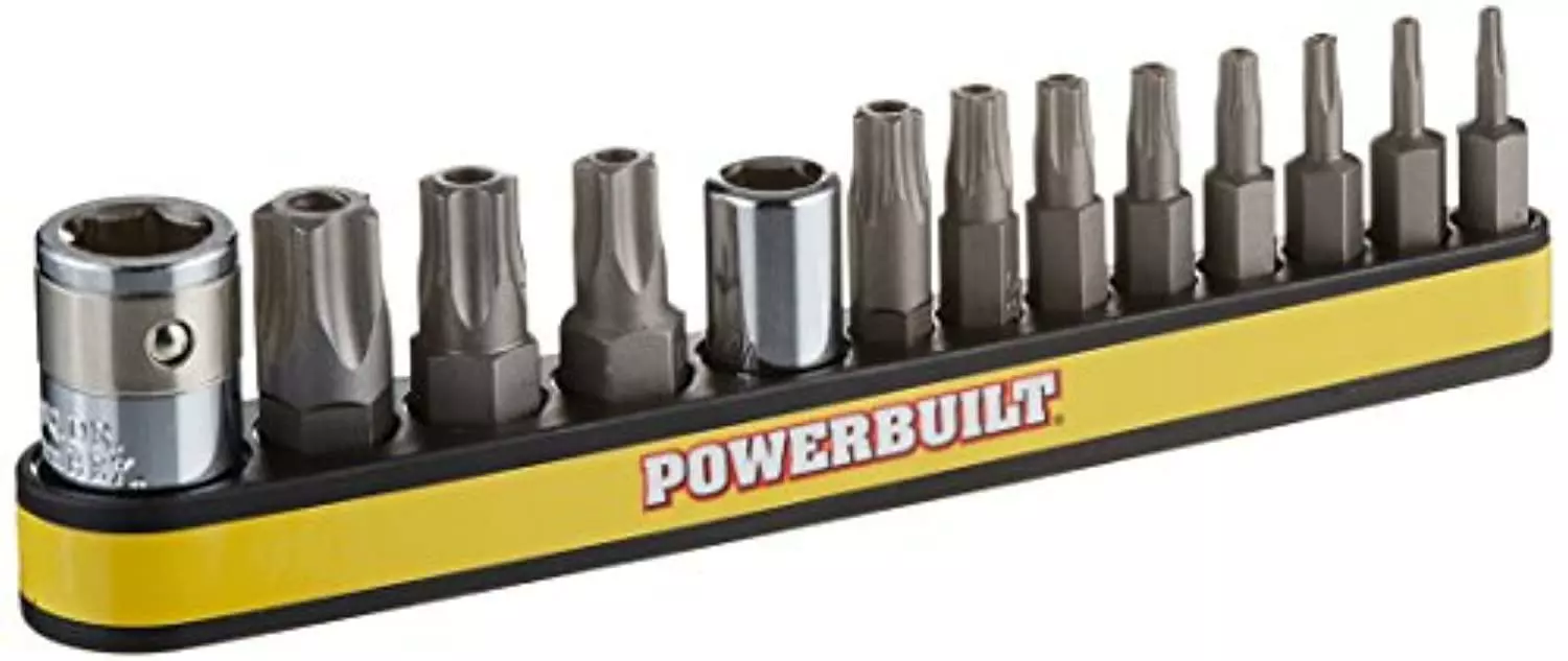 powerbuilt 941130 star bit socket set (tamper proof) (13 piece) (8 piece 6mm – t8-t40, 3 piece 10mm – t45-t55, 2 piece adapte