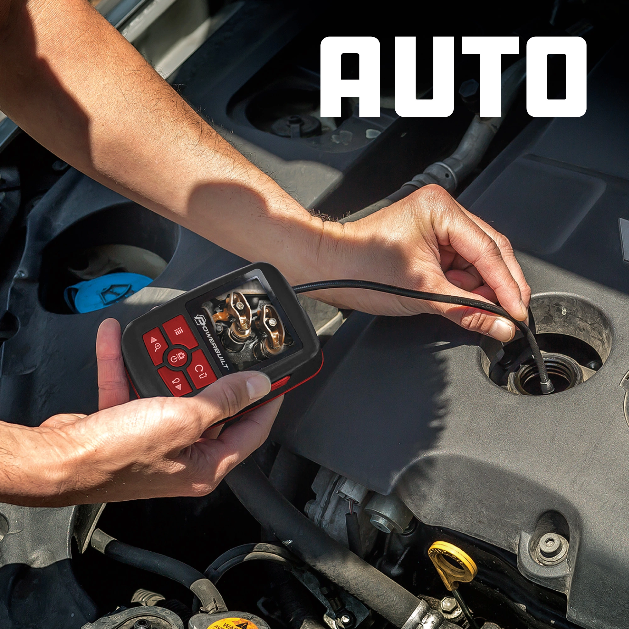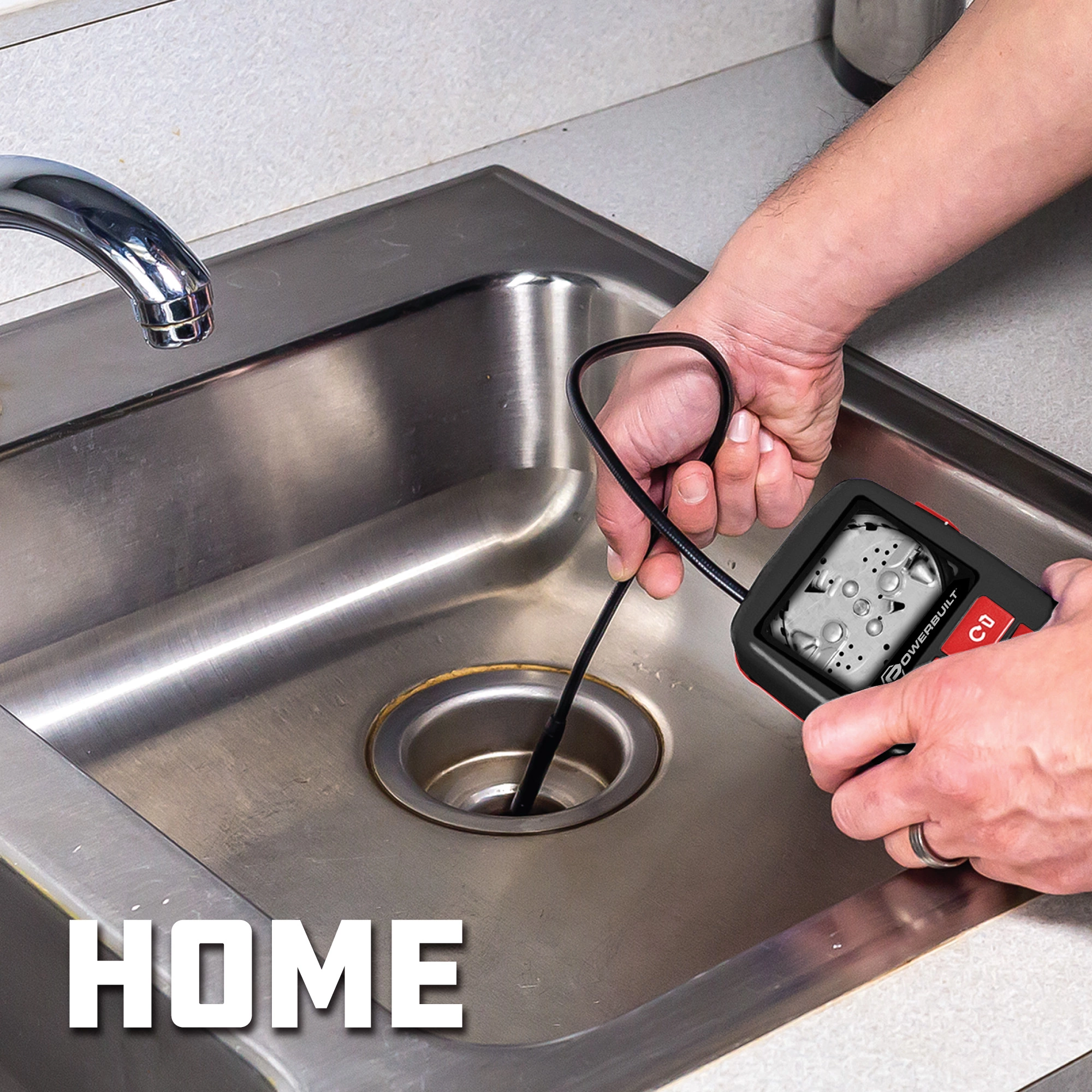 View and inspect just about anything, anywhere with the Powerbuilt Digital Videoscope and Borescope! It’s durable, compact and easy to use. The 18-inch long semi-rigid camera shaft stores inside the unit. When you’re ready to use the camera, unwind the cable and feed the 300 megapixel camera lens into an opening as small as 5/16” diameter. Then view and capture images on the 2-1/4” color LCD display. Adjust the built-in LEDs on the camera tip for more or less light. 4x zoom makes it easier to find and inspect fine details. And you can select either white or UV light, depending on your inspection needs. There’s even a built-in worklight on the camera body for illuminating dark worksites. Use the included attachable hook, magnet or mirror to help see and retrieve small objects. Store everything in the included pouch for safekeeping. The Powerbuilt inspection camera operates up to 90 minutes continuously on 4 AAA batteries (not included).