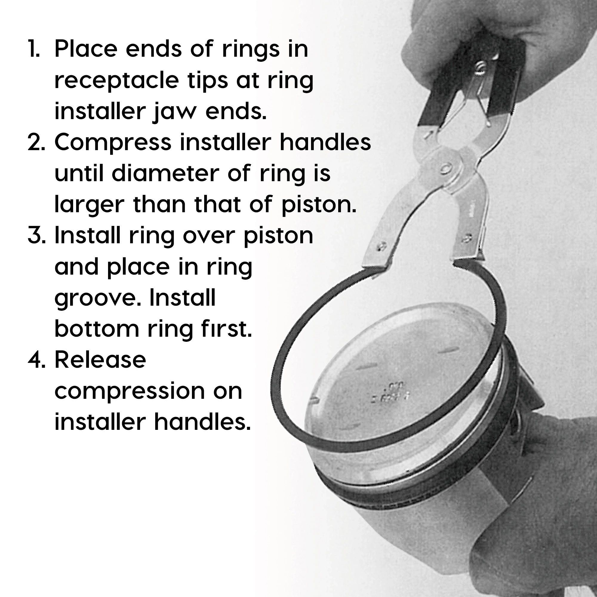 For eliminating compression ring breakage by reducing installation stress. Fits most passenger car and light truck rings. Comfort grip handles. Meets or exceeds ANSI standards. Lifetime warranty.