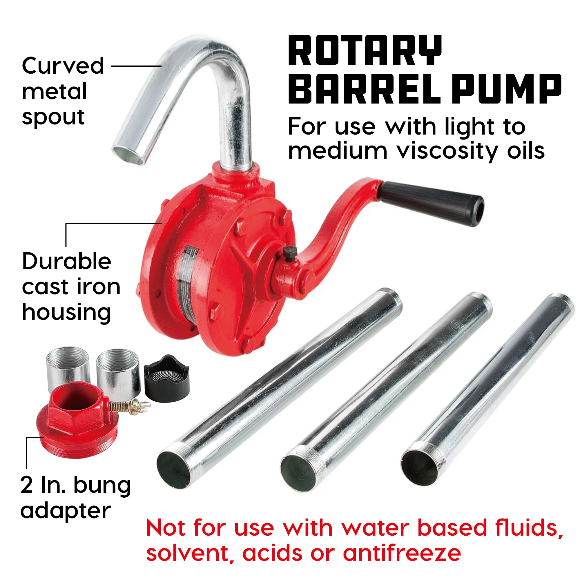 The Powerbuilt Rotary Barrel Pump is ideal for dispensing light to medium viscosity oils. Simply attach the included 2″ bung adapter to the lid of any 30 to 55 gallon barrel, then rotate the handle to dispense about 200cc of fluid per revolution. Note, the rotary barrel pump is not for use with water-based fluids, solvents, acids or antifreeze. Powerbuilt Tools are Serious Tools for Serious Work. Millions of Powerbuilt products are used every day around the globe, on the job, at home and in the garage. Powerbuilt tools are built with the performance, features, fit and finish to satisfy the most demanding users. No matter which Powerbuilt tool you select, you will enjoy the added confidence of knowing that all Powerbuilt tools and equipment meet or exceed applicable standards set by the US Government and American National Standards Institute (ANSI). Ready to get serious? Get Powerbuilt tools!