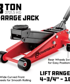 Powerbuilt 3 Ton Garage Jack, Dual Piston Pump Lift Range from 4-3/4″ to 18″