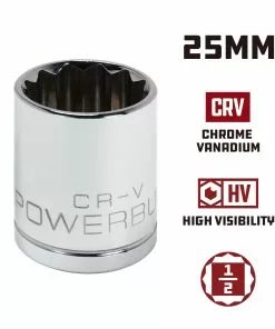 Powerbuilt 1/2 Inch Drive x 25 MM 12 Point Shallow Socket – 642033