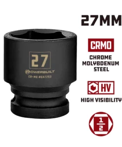 Powerbuilt 1/2 Inch Drive x 27 MM 6 Point Impact Socket – 647293