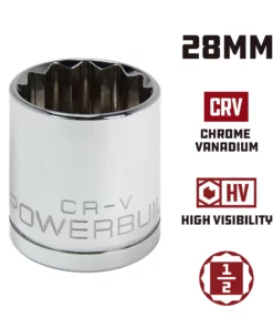 Powerbuilt 1/2 Inch Drive x 28 MM 12 Point Shallow Socket – 648216