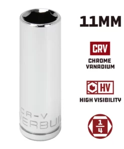 Powerbuilt 1/4 Inch Drive x 11 MM 6 Point Deep Socket – 648303