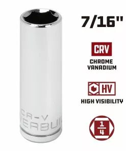 Powerbuilt 1/4 Inch Drive x 7/16 Inch 6 Point Deep Socket – 648296