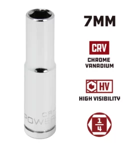 Powerbuilt 1/4 Inch Drive x 7 MM 6 Point Deep Socket – 648299