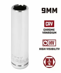 Powerbuilt 1/4 Inch Drive x 9 MM 6 Point Deep Socket – 648301