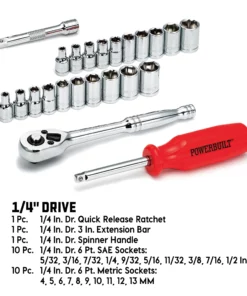 Powerbuilt 24 Pc. 1/4 in. Drive SAE and Metric Socket Set – 640397