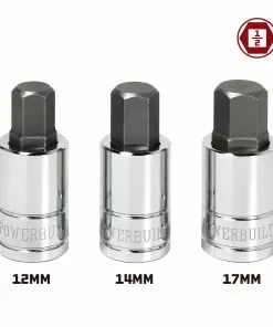 Powerbuilt 3 Piece 1/2 Inch Drive Metric Hex Bit Socket Set – 641862