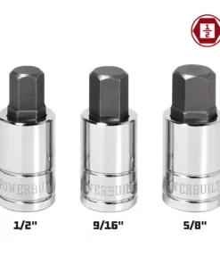 Powerbuilt 3 Piece 1/2 Inch Drive SAE Hex Bit Socket Set – 641863