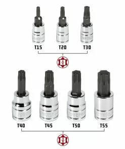 Powerbuilt 7 Pc Torx Bit Socket Set, Star Bit, 1/4″ and 3/8″ Drive – 648414