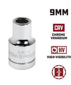 Powerbuilt 1/2 Inch Drive x 9 MM 12 Point Shallow Socket – 641764