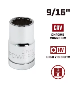 Powerbuilt 1/2 Inch Drive x 9/16 Inch 12 Point Shallow Socket – 642001
