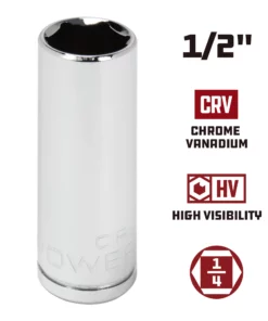 Powerbuilt 1/4 Inch Drive x 1/2 Inch 6 Point Deep Socket – 648297