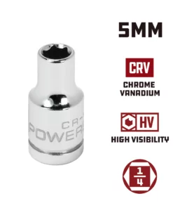 Powerbuilt 1/4 Inch Drive x 5 MM 6 Point Shallow Socket – 648281