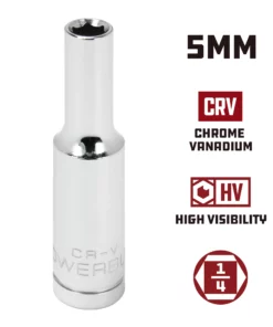 Powerbuilt 1/4 Inch Drive x 5 MM 6 Point Deep Socket – 648311