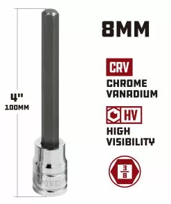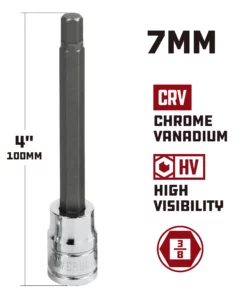 Powerbuilt 3/8 in. Drive X 7/32 in. Extra Long Hex Bit Socket, 4 in. Long