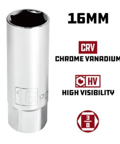 Powerbuilt 3/8-Inch Drive Metric Spark Plug Socket 16mm – 643008