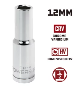 Powerbuilt 1/2 Inch Drive x 12 MM 6 Point Deep Socket – 642219